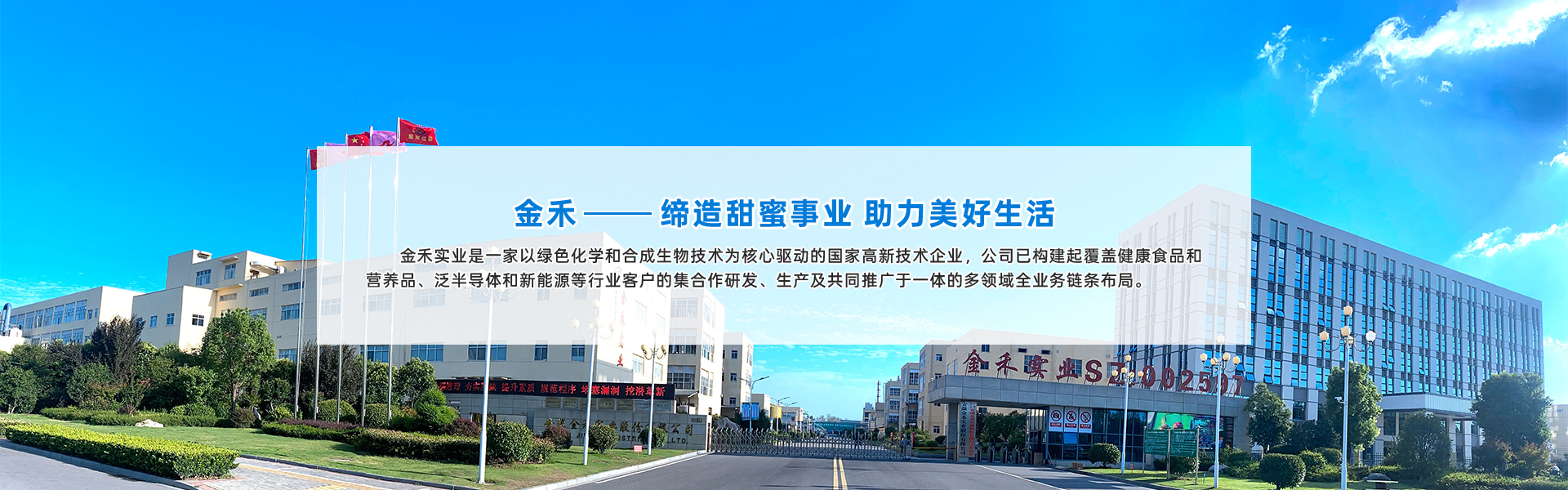 安徽金禾實業股份有限公司是一家致力于服務美好生活和先進制造,專業從事食品配料、大宗及電子化學品和功能性化工中間體的高新技術企業,是甜味劑安賽蜜、三氯蔗糖和香料麥芽酚的主要生產商。公司主營業務為食品健康配料的生產研發,新型化工材料及中間體的生產研發,大宗及電子化學品的生產研發。主要服務于食品飲料、日用消費、醫藥健康、農業環保及先進制造業等領域的客戶。下游知名客戶包括各大食品飲料及香精香料公司。公司前身為始建于1974年的來安縣化肥廠,股份制公司成立于2006年,2011年7月7日在深交所中小企業板掛牌上市,股票代碼為002597(ISIN: CNE1000015C4),于2017年12月1日納入“深港通”標的,于2018年1月2日納入深證成指成份股,連續入選“證券時報”主辦的第十一屆和第十二屆“中國中小板上市公司價值五十強”名單??偛课挥诎不粘?,擁有安徽來安及定遠鹽化工園兩個生產基地,在合肥及南京分別設有合成材料研究院有限公司和應用研發中心。